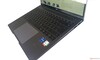键盘拥有两段式照明和足够大的按键,行程相当柔和,压力点明显。然而,按键太容易被触发,对我们的测试者来说,留下了一个稍微太过海绵的印象。 按键行程不算太短,特别是对于超极本来说。 键盘盖在压力下和打字时弯曲,这造成一些最小的烦恼。回车键也有点咔咔作响。