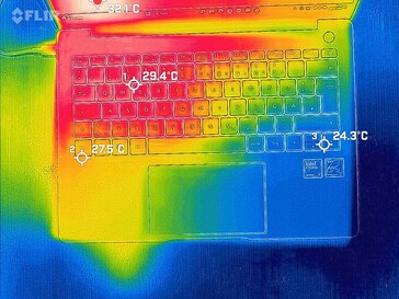 (+) The palmrests and touchpad are reaching skin temperature as a maximum (35.2 °C / 95.4 F) and are therefore not hot.