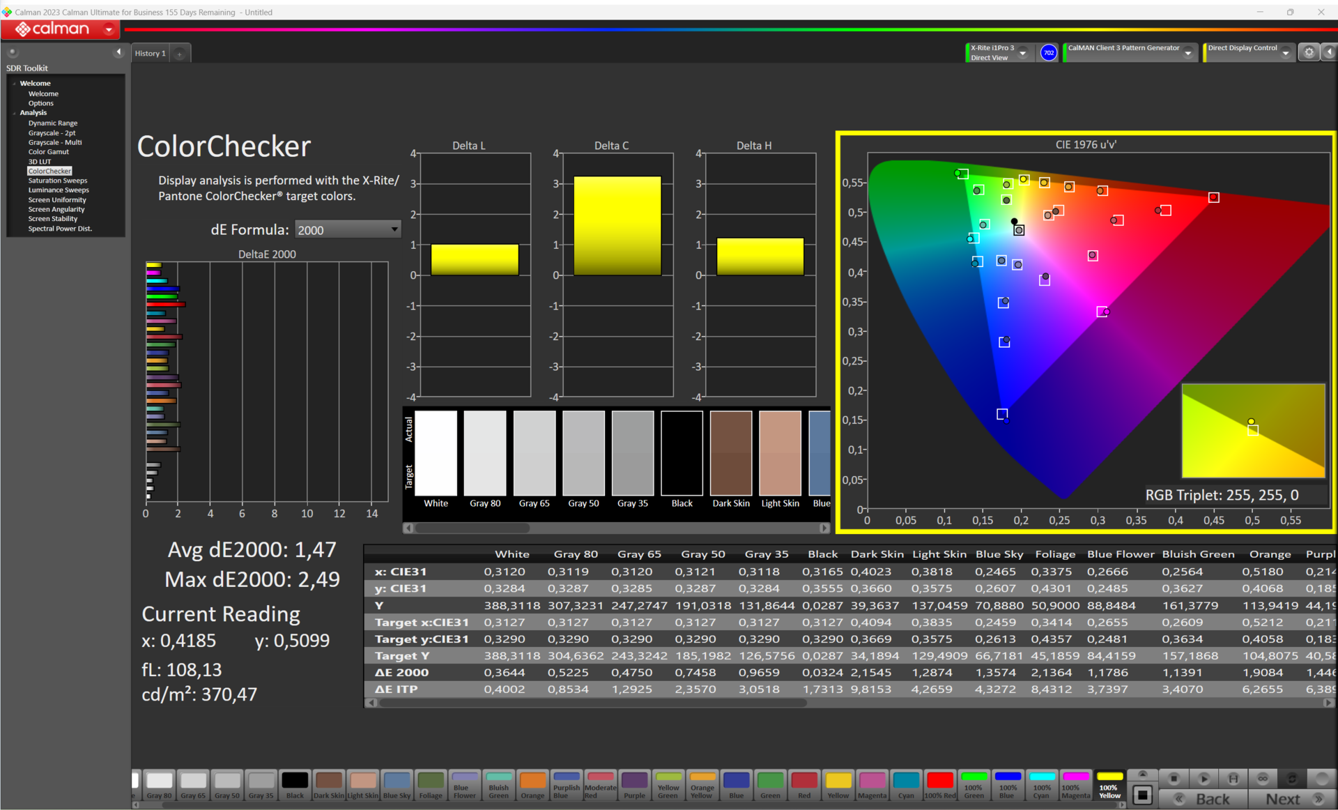 ΔE ColorChecker Calman: 1.47 | ∀{0.5-29.43 Ø4.78}