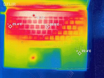 (+) The palmrests and touchpad are cooler than skin temperature with a maximum of 26.2 °C / 79.2 F and are therefore cool to the touch.