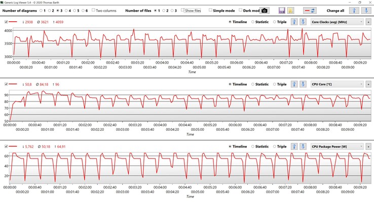 尽管该设备的性能很高,但冷却系统似乎工作得很好,因为在浏览网页或播放高分辨率视频时,大部分时间它几乎保持沉默。第一个风扇阶段(大约27 dB(A))在安静的环境中只能听到一点声音。即使在游戏时,风扇也保持平静;我们在Witcher 3 ,测得最大的32 dB(A)。在CPU上负载较重的游戏确实会导致风扇轻微转动,但不会大到使人难以使用内部扬声器。