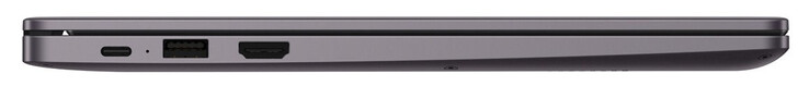 笔记本电脑有两个USB-A接口(1个USB 2.0,1个USB 3.2 Gen 1)和一个USB-C接口(USB 3.2 Gen 1),也用于为笔记本电脑充电(Power Delivery)。不支持通过USB-C的DisplayPort,所以加上HDMI端口, 只有一个可用的视频输出端口。这款笔记本电脑不提供存储卡读卡器。