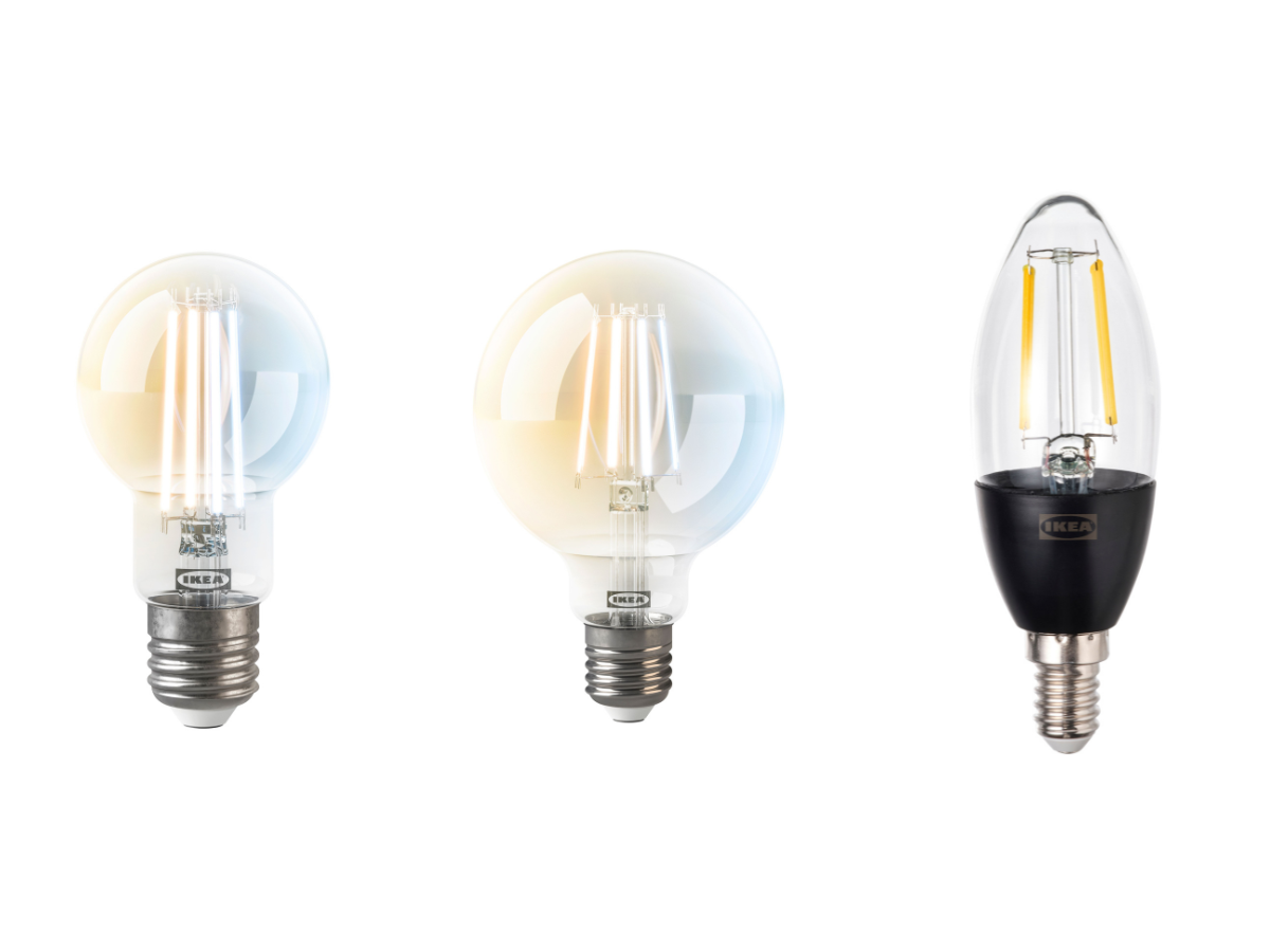 宜家的 Kajplats 系列有两款 GU10 定向射灯,一款是亮度高达 370 流明的彩色和白色光谱型,另一款是亮度高达 575 流明的白色光谱型。最后,还有三种透明玻璃装饰灯泡。60 毫米(约 2.4 英寸)的 E14 和 E27 标准球形灯泡亮度为 470 流明,而 95 毫米(约 3.7 英寸)的 E27 大型球形灯泡亮度可达 810 流明。