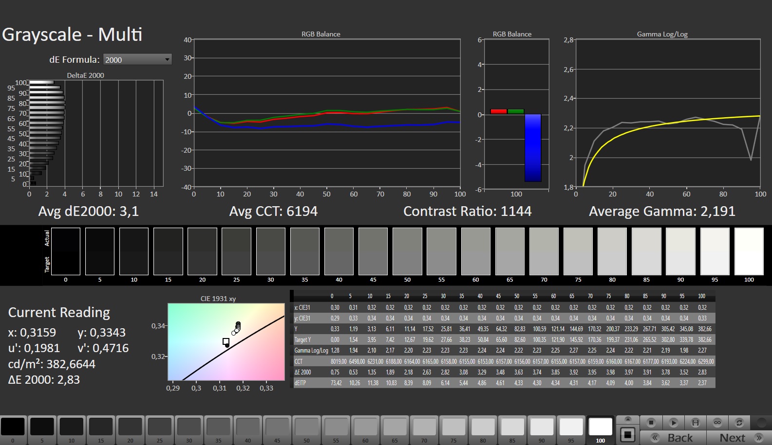 ΔE Greyscale Calman: 3.1 | ∀{0.09-98 Ø5}