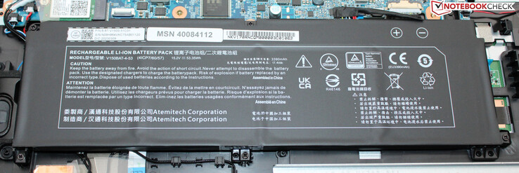 勉强4.5至5小时的现实电池寿命并没有激发任何热情,相对较低的53.35Wh的电池容量在这里变得很明显。由于电池不能用USB-C充电器充电,你总是不得不带上电源。哑光的17.3英寸显示屏(FHD,IPS,144Hz,sRGB)总体上留下了良好的印象。