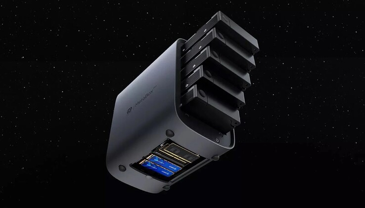 MetaBox NAS 将两块固态硬盘和五块硬盘放入光滑的金属机箱中