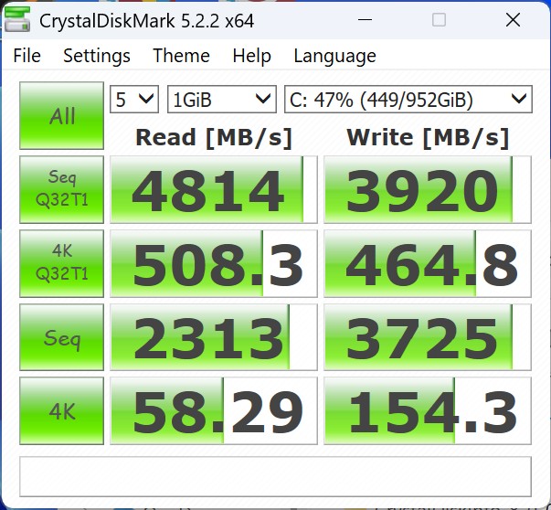 | Connectivity - USB 3.x / USB4 / TB - AS SSD Seq Read Test (1GB) | |