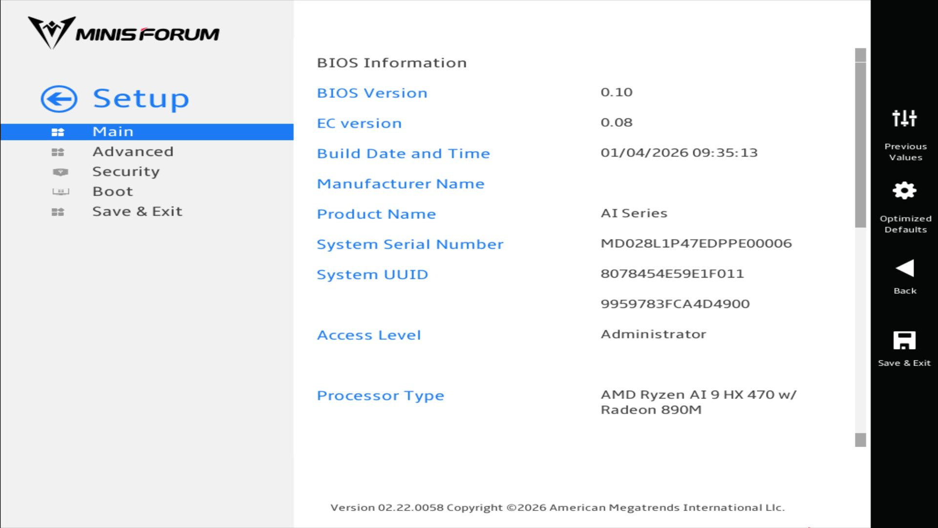 | Minisforum AI X1 Pro, HX 470 (v8.20.8100) | |
