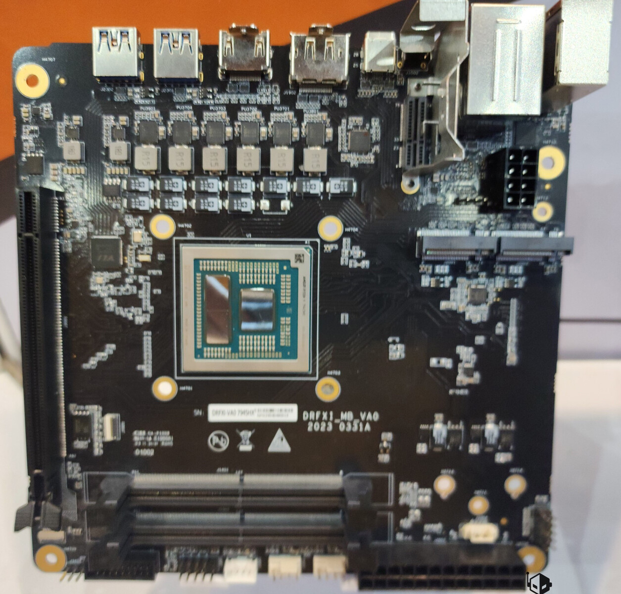 这家中国迷你电脑制造商尚未展示任何采用上述笔记本电脑处理器的迷你电脑构建。相反,Computex '23的Minicforum展台正在展示采用Dragon Range和Raptor Lake-HX BGA芯片的迷你ITX主板。这些主板看起来比MINISFORUM的通常格式要大一些,因为它们还包括一个PCIe 4.0 X16插槽,用于安装全尺寸GPU。 全尺寸的GPU.然而,GPU不会直接连接到主板上,而是通过一根立管电缆延伸到一个特殊的安装外壳,类似于 B550 Pro设计