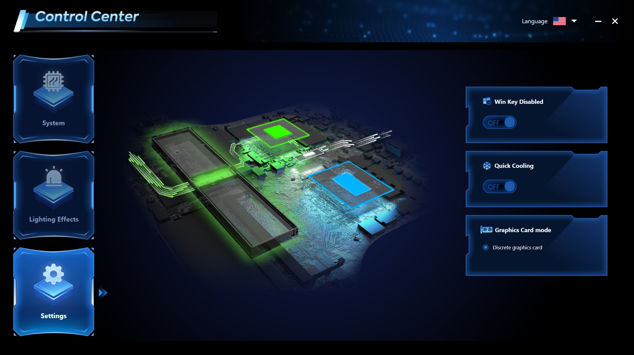我们在游戏模式下进行了所有性能测试,以获得综合评分。在 BIOS 中,只需轻触正面的按钮或通过控制中心即可激活该模式,它允许 GPU 和 CPU 在负载情况下消耗更多电能。BIOS 看起来很现代,但并没有为用户提供很多优化设备的选项。无法手动调节功耗或风扇曲线。