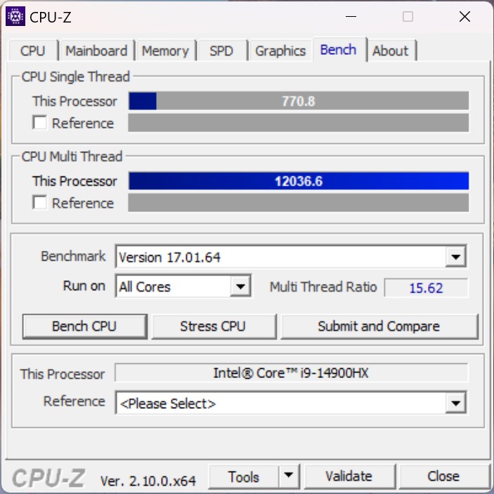 | Average Intel Core i9-14900HX (817 - 2071, n=25) | |