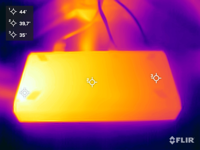(±) The bottom heats up to a maximum of 44.4 °C / 112 F, compared to the average of 38.5 °C / 101 F
