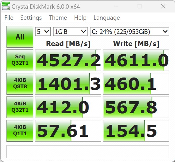 在 Mercury 系列 EM780 中,英特尔杀手 Wi-Fi 6E AX1675w 可确保稳定、快速的无线连接。在我们的实际测试中,该 Wi-Fi 模块始终表现出色。尽管如此,当连接到 6 GHz 网络时,它仍无法达到 EM680 中联发科 RZ616 所显示的性能水平。这些结果是在华硕 ROG Rapture GT-AXE11000 参考路由器的帮助下获得的。