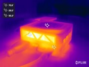 (+) In idle usage, the average temperature for the upper side is 30.3 °C / 87 F, compared to the device average of 32.5 °C / 91 F.