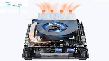 在端口方面,Minisforum UN1270 有两个USB 3.2 Gen 2A、两个 USB 2.0 Type-A、一个 USB 3.2 Type-C、一个 HDMI、一个 DP 和一个 2.5G 以太网。此外,这款迷你电脑还配备了强大的冷却装置。得益于静音风扇,该系统待机时噪音仅为 32 分贝,满载时噪音为 43 分贝。