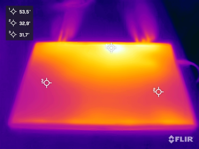 (-) The bottom heats up to a maximum of 54.8 °C / 131 F, compared to the average of 36.8 °C / 98 F