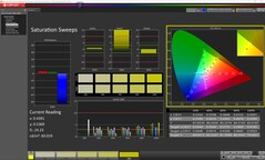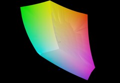 与 sRGB 色彩空间相比,Delta-E-2000 的色彩偏差略高于对比设备。不过,我们认为这些结果还不算太差。在此阶段,我们的手动校准并没有带来任何明显的改进。Minisforum V3 的色彩空间覆盖率相对较好,尽管它未能 100%覆盖 P3 色彩空间。不过,我们的测试样本达到了 97.7%,这已经是非常好的结果了。