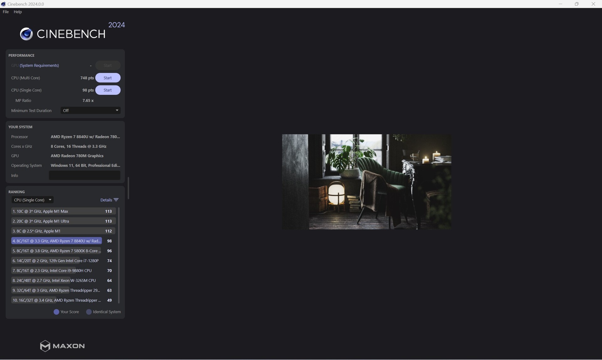 | Minisforum V3 R7 8840U, Radeon 780M, Kingston OM8PGP41024Q-A0, IPS, 2560x1600, 14" | HP Elite Dragonfly Folio 13.5 G3 i7-1265U, Iris Xe G7 96EUs, Samsung PM9A1 MZVL2512HCJQ, IPS, 1920x1280, 13.5" | Dell XPS 13 9315 2-in-1 Core i5-1230U i5-1230U, Iris Xe G7 80EUs, , IPS, 2880x1920, 13" | Microsoft Surface Pro 9, i7-1255U i7-1255U, Iris Xe G7 96EUs, Samsung MZ9L4512HBLU-00BMV, IPS, 2880x1920, 13" | Lenovo ThinkPad X12 Detachable 20UW000KGE i3-1110G4, UHD Graphics 620, Toshiba BG4 KBG40ZNT256G, IPS LED, 1920x1280, 12.3" | Robo and Kala TW220 2-in-1 SD 8cx Gen 3, Adreno 690, Kioxia BG5 KBG50ZNS512G, AMOLED, 2560x1600, 12.6" | Average AMD Radeon 780M | Average of class Convertible | |