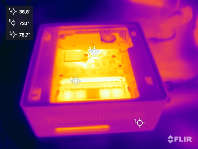 (±) The maximum temperature on the upper side is 40 °C / 104 F, compared to the average of 36 °C / 97 F, ranging from 21.6 to 69.5 °C for the class Mini PC.