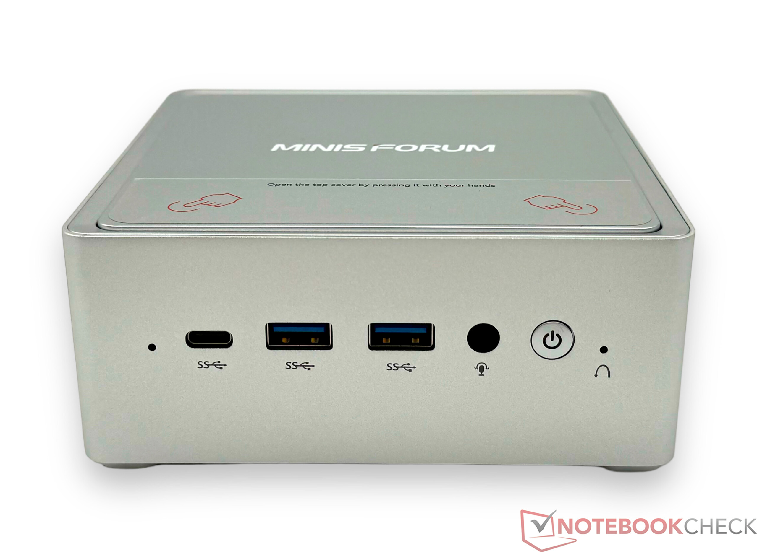 从外观上看,这款迷你电脑是银色的,但这并不是一件坏事。它的所有表面都均匀排列,我们没有发现任何制造缺陷。遗憾的是,Minisforum 决定不使用完全由铝制成的外壳,因为这样会进一步提升其触感。这肯定会导致目前的价格无法维持,而这恰恰是该设备目前成为非常有趣的选择的原因。