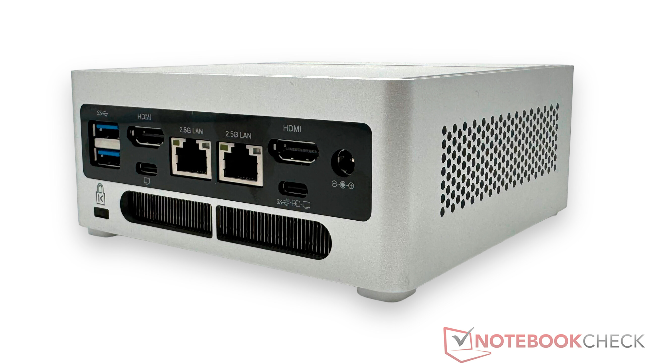 从外观上看,Minisforum 金星系列 NAB9 与 NAB6 或 NPB5 没有什么不同:外壳是一样的,当然,优点和缺点也是一样的。优点之一是它的结构非常稳定,这要归功于它的外壳是由金属制成的。盖子和底部由塑料制成,与金属表面相比略显廉价。说到它的制造质量,我们没有什么负面意见。
