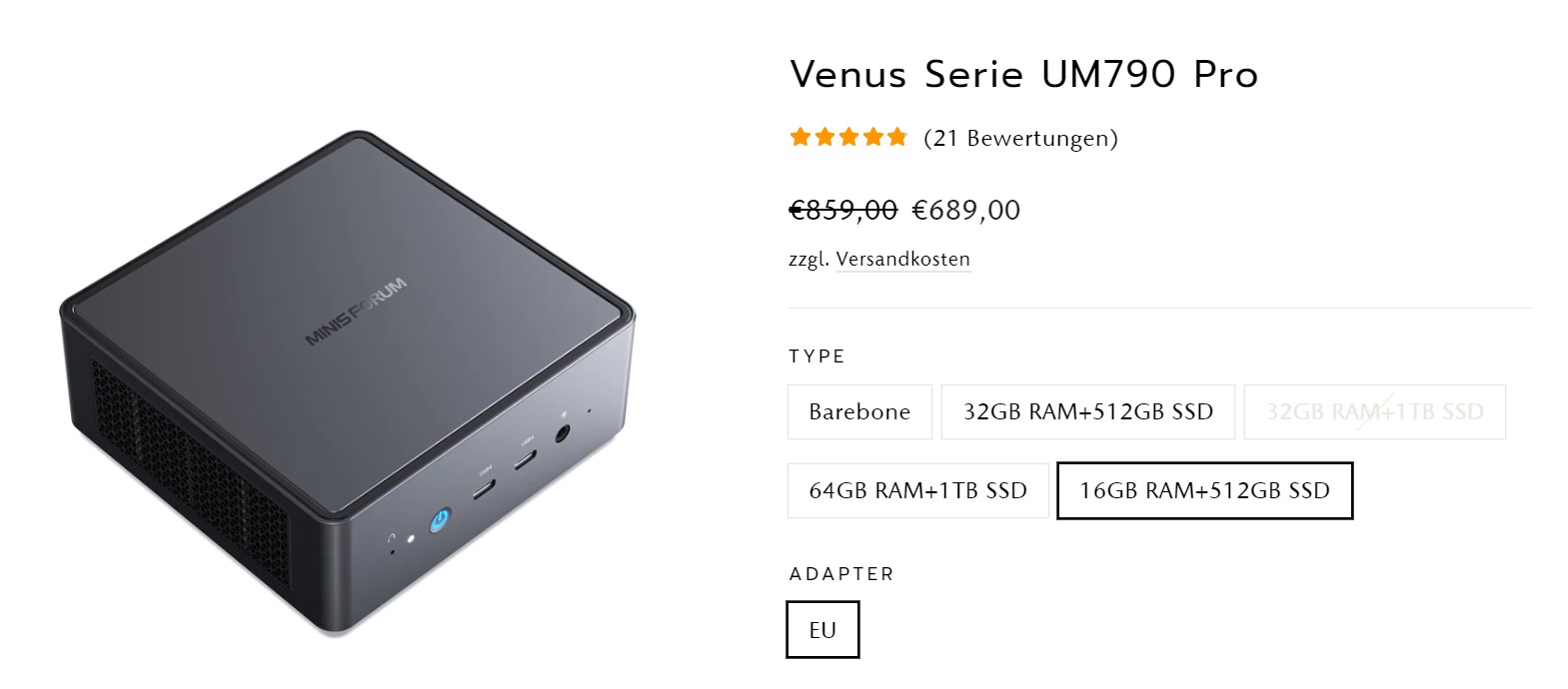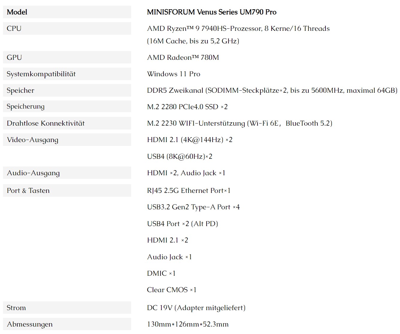 | 82.8 % v7 (old) | 07 / 2023 | Minisforum Venus Series UM790 Pro R9 7940HS, Radeon 780M | 666 g | 52.3 mm | |