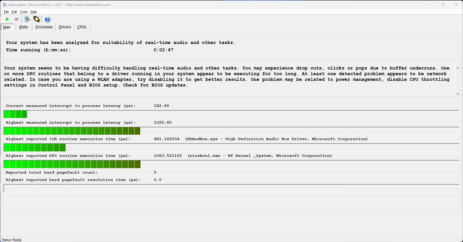 | DPC Latencies / LatencyMon - interrupt to process latency (max), Web, Youtube, Prime95 | |