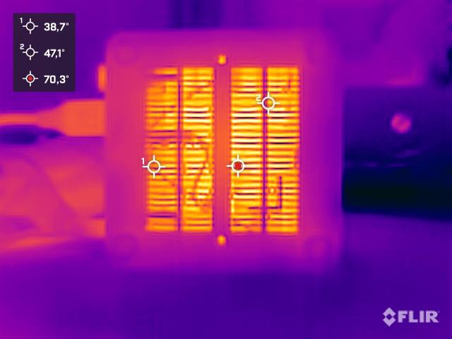 (+) The bottom heats up to a maximum of 31.8 °C / 89 F, compared to the average of 36.4 °C / 98 F