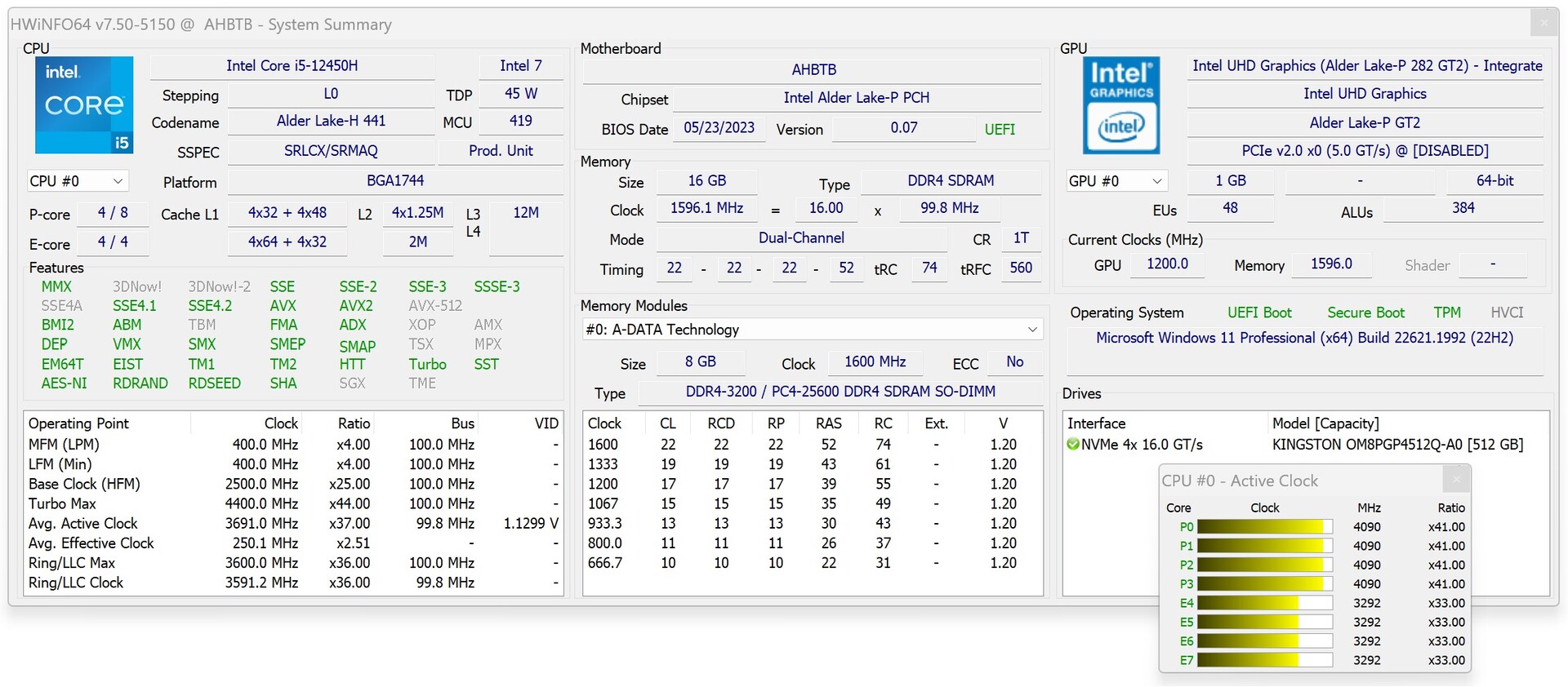 性能 - Alder Lake-H,8 核 12 线程