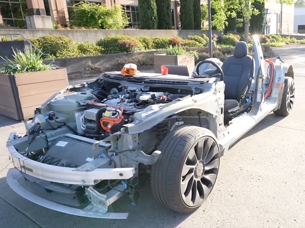 成功的YouTube频道"B is for Build "的主持人的主持人最近拆解了他们的特斯拉3型车,其中包括拆除A、B和C柱以及无数的内部零件。原文是实验的目的是回答被拆掉的电动车是否以及何时会最终停止运作的问题。由于它没有,这些 汽车爱好者们决定把他们的特斯拉3型性能车开上路,甚至测试它的加速度,它的加速度明显提高。