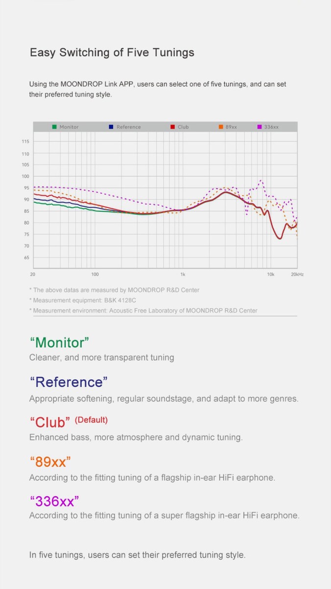 灰色耳机内部隐藏着两个驱动单元--一个是新开发的锂镁合金平衡电枢高音单元,另一个是直径为 13 毫米的动圈驱动单元,用于中低频。为了使声音符合自己的喜好,用户可以在 Moondrop Link 智能手机应用程序中选择五种调谐配置文件。除 SBC 和 AAC 外,Moondrop Supersonic 还支持全新、更高效的 LC3 编解码器和索尼 LDAC,能以高达 32 位、96 kHz 和 990 kbit/s 的速度串流音乐。
