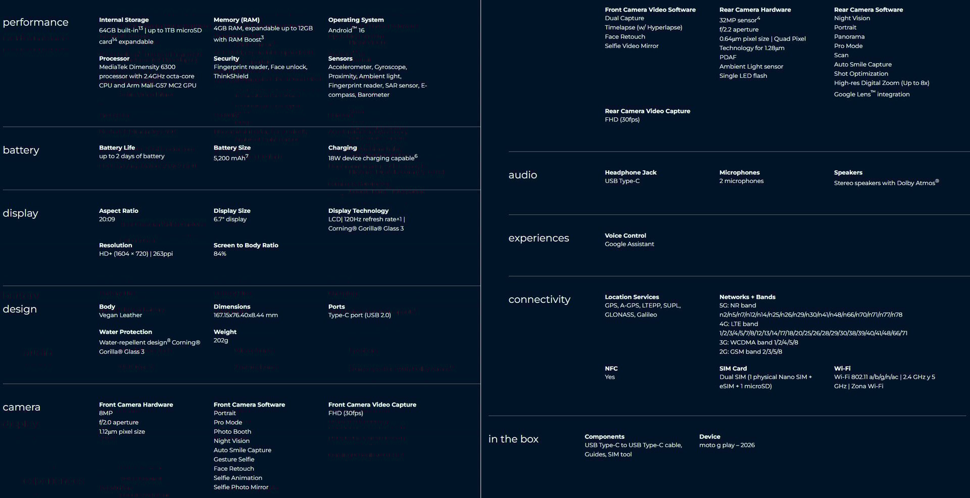 至于背面,这款经济实惠的手机采用了单个 3200 万像素传感器,这是非 Play 智能手机的又一次降级。其他亮点包括支持双卡双待、配备杜比全景声(Dolby Atmos)的立体声扬声器、IP52 等级。以及Android 16 开箱即用。