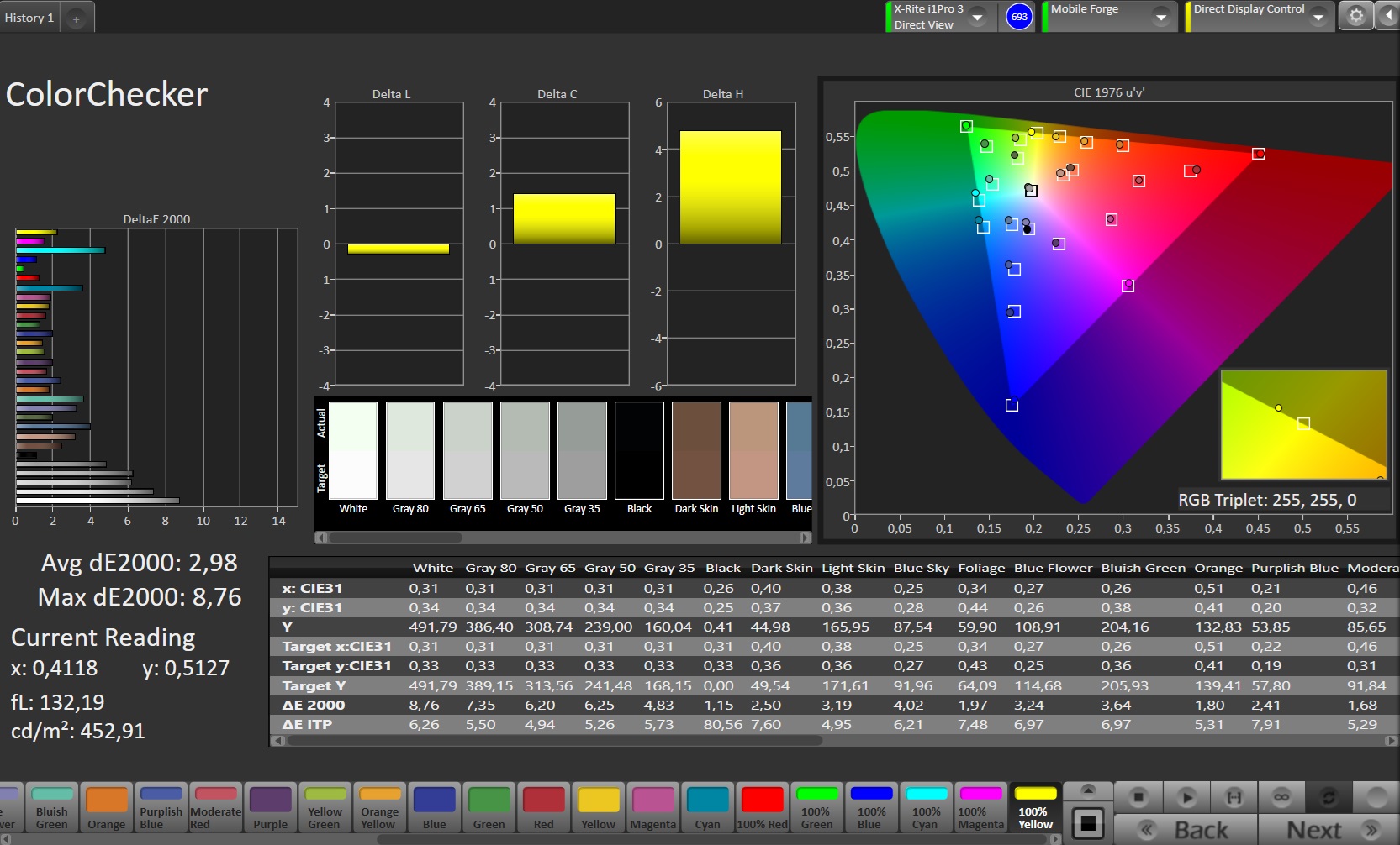 ΔE ColorChecker Calman: 2.98 | ∀{0.5-29.43 Ø4.78}