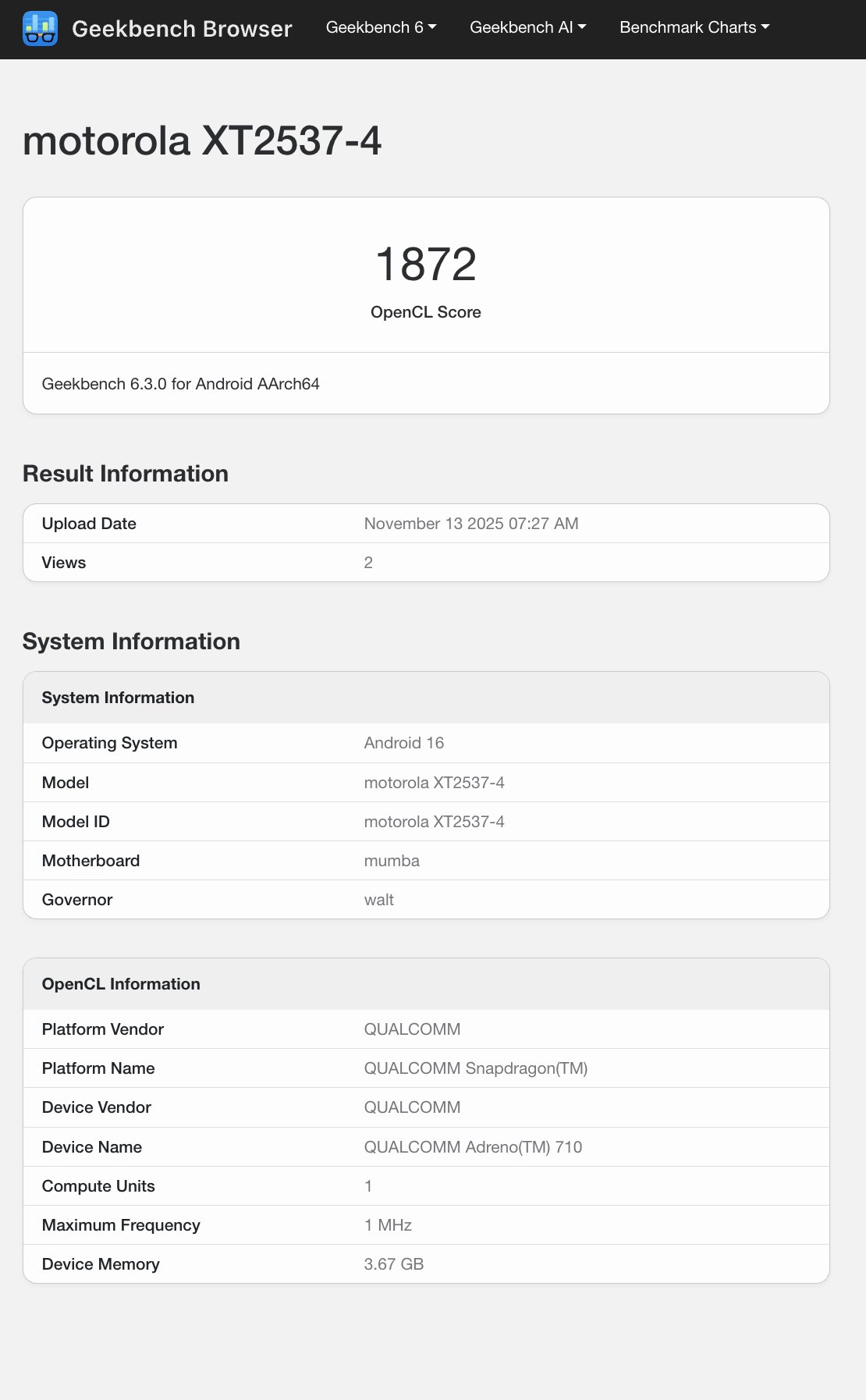 不过,在正式发布之前,Geekbench 上又出现了一款新机型。目前,该基准测试平台只返回了 "摩托罗拉 XT2537-4 "的名称,XT2534-4 是根型号 "XT2537 "的变体。多方消息显示,XT2537 与 Moto G76 有关,是 Moto G75 的直接后继机型。 摩托 G75的直接后续机型。相比之下,Moto G76 似乎采用的是骁龙 6s Gen 4,高通公司在不到一个月前发布的芯片组 不到一个月前发布的芯片组.