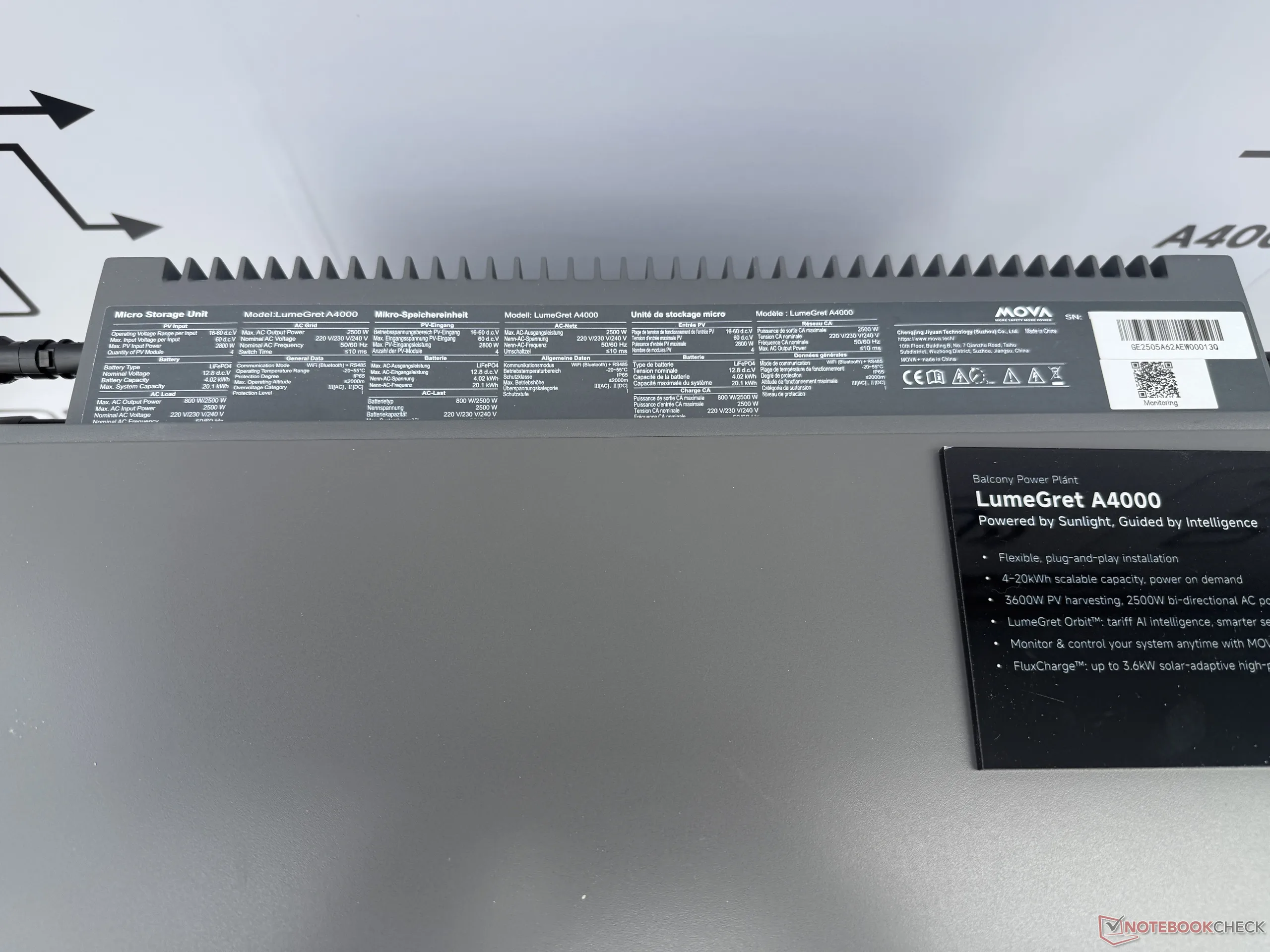 相比之下,Mova 表示,LumeGret A2000 侧重于增强安全性,具有包括气溶胶灭火功能在内的广泛保护系统。因此,其容量较低,从 1.92 千瓦时到 9.6 千瓦时不等。