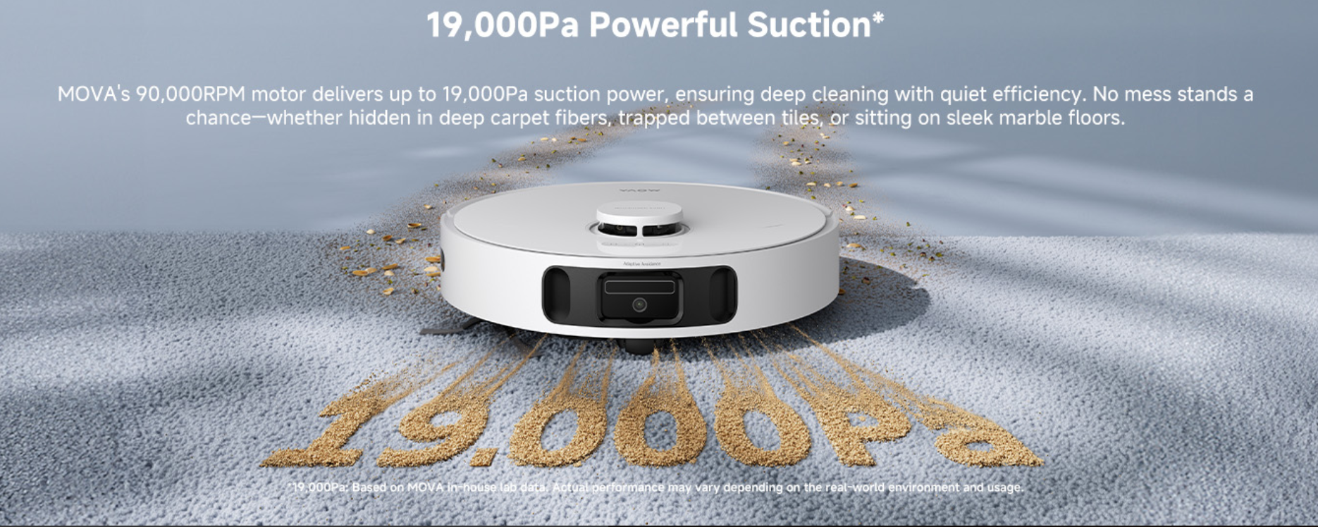 Mova E40 的吸力特别大,额定吸力为 19,000 帕。高吸力对清洁地毯非常有利,但对这种说法自然要持一定的怀疑态度。CleanChop 3.0 刷子是一个中央滚筒,可剪切毛发,而新设计的无缠结边刷则可防止毛发缠结。机器人吸尘器本身会将收集到的垃圾倒入基站,基站有一个容量为 3.2 升的集尘袋。使用超声波检测地毯,然后升起拖把并增加吸力。