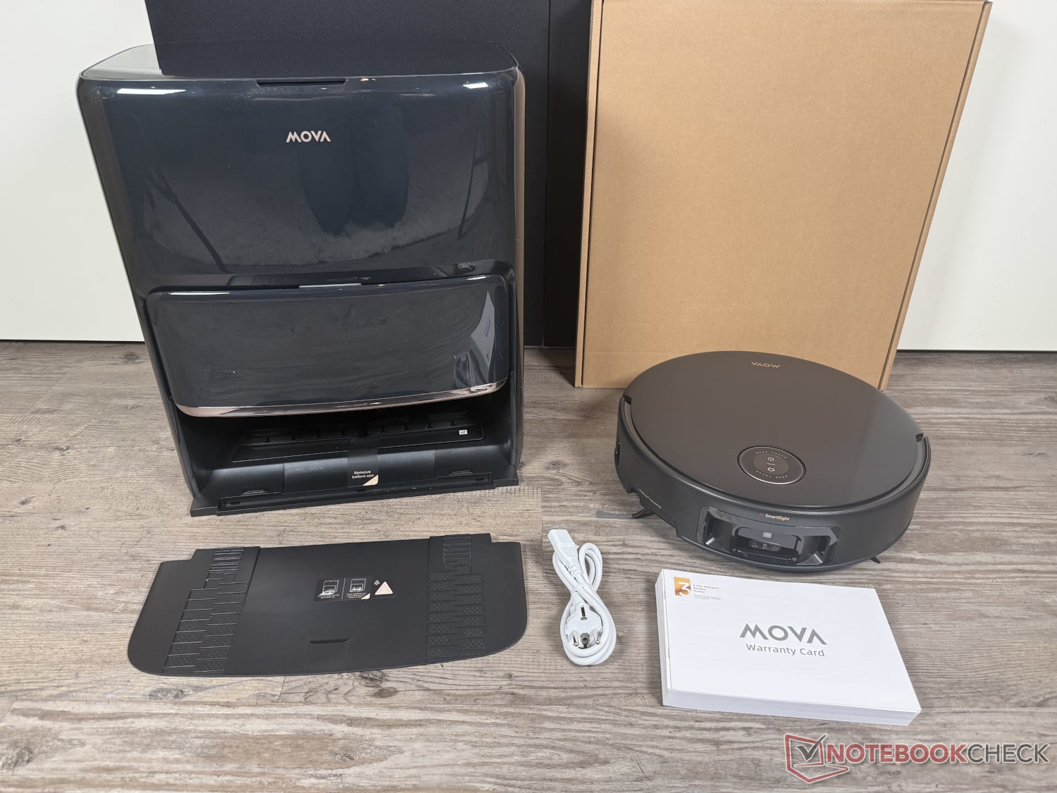 完整版 Mova Z60 Ultra Roller 还配备了全面的供货范围。除机器人和基站外,它还配有四个集尘袋和滚筒擦拭器、两个主刷、三个边刷、四个灰尘过滤器(每个安装一次,其余更换)以及 1 升清洁液和 200 毫升宠物异味清除剂。