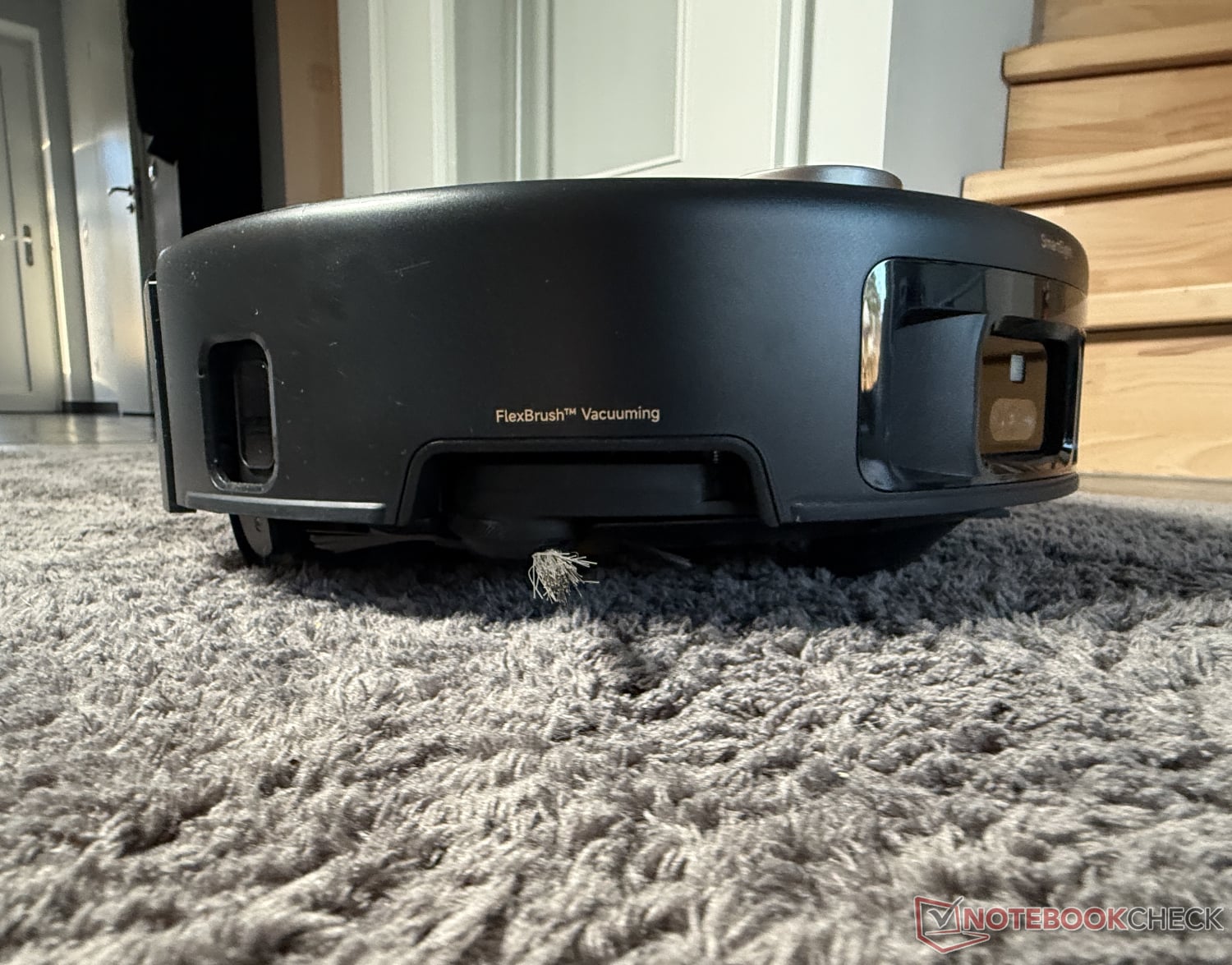 攀爬能力在测试中也表现突出。根据制造商的说法,Mova Z60 Ultra Roller 可以克服高达 4.8 厘米(一步)或 8 厘米(两步)的障碍物,这要归功于其可伸展的辅助支腿和底盘升降装置。在测试中,它克服了高达 4.5 厘米的边缘,这是一个令人印象深刻的结果。