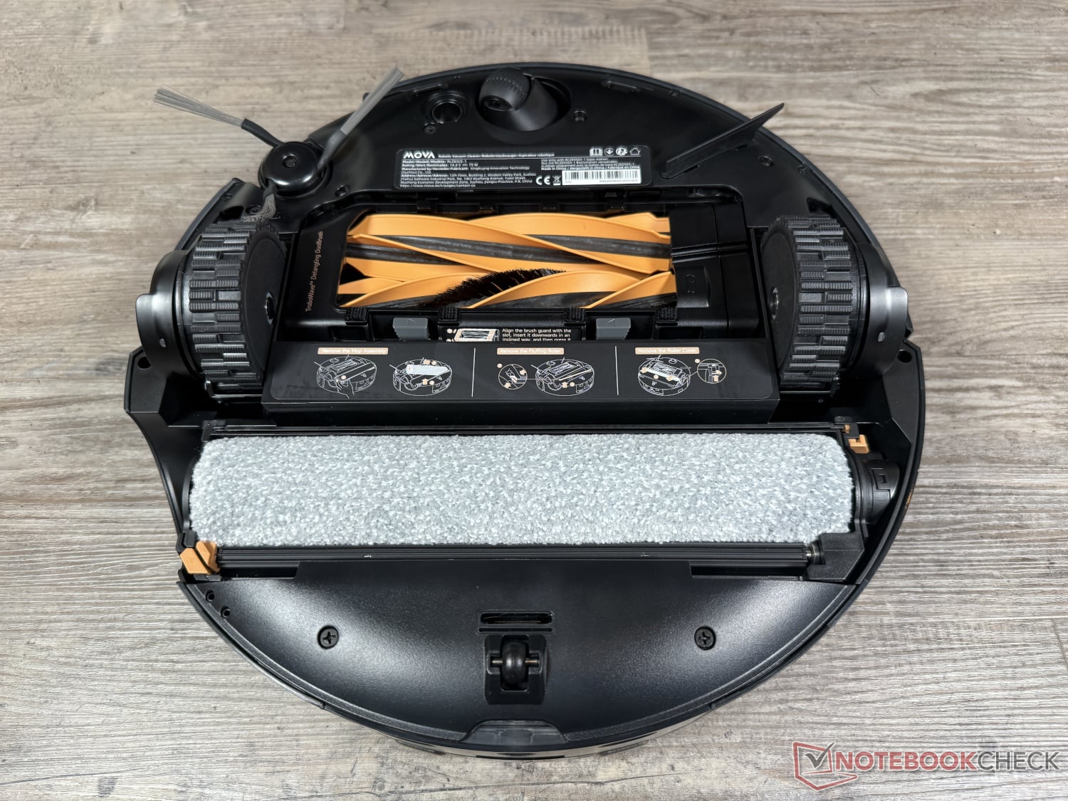 同样相同的是,两款机器人吸尘器都使用宽大的拖地滚筒进行拖地。这项技术被称为 Mova HydroForce 拖地技术,它通过 12 个喷嘴喷出的清水不断冲洗滚筒拖把,而滚筒拖把之前已经清除了脏水。接触压力为 4100 帕,略低于 Dreame。不过,在清洁地毯时覆盖在拖把滚筒上的保护罩也在这里安装。
