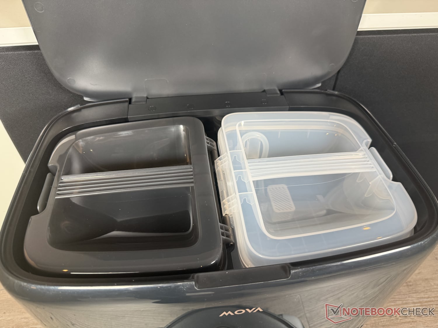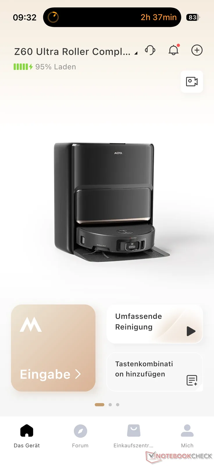 当然,还包括采用熟悉的 Mova 设计的基站。它不仅能将集尘盒清理到 3.2 升的集尘袋中,还能负责清扫 mp4 和 mp5。它还负责清洁拖地功能。Mova 使用的 80°C 水温比 Dreame 稍低。不过,在测试中,这并没有真正影响拖地辊的视觉清洁度。然后用暖风将其吹干。此外,还可以通过应用程序激活紫外线杀菌功能,并自动添加两种清洁剂。