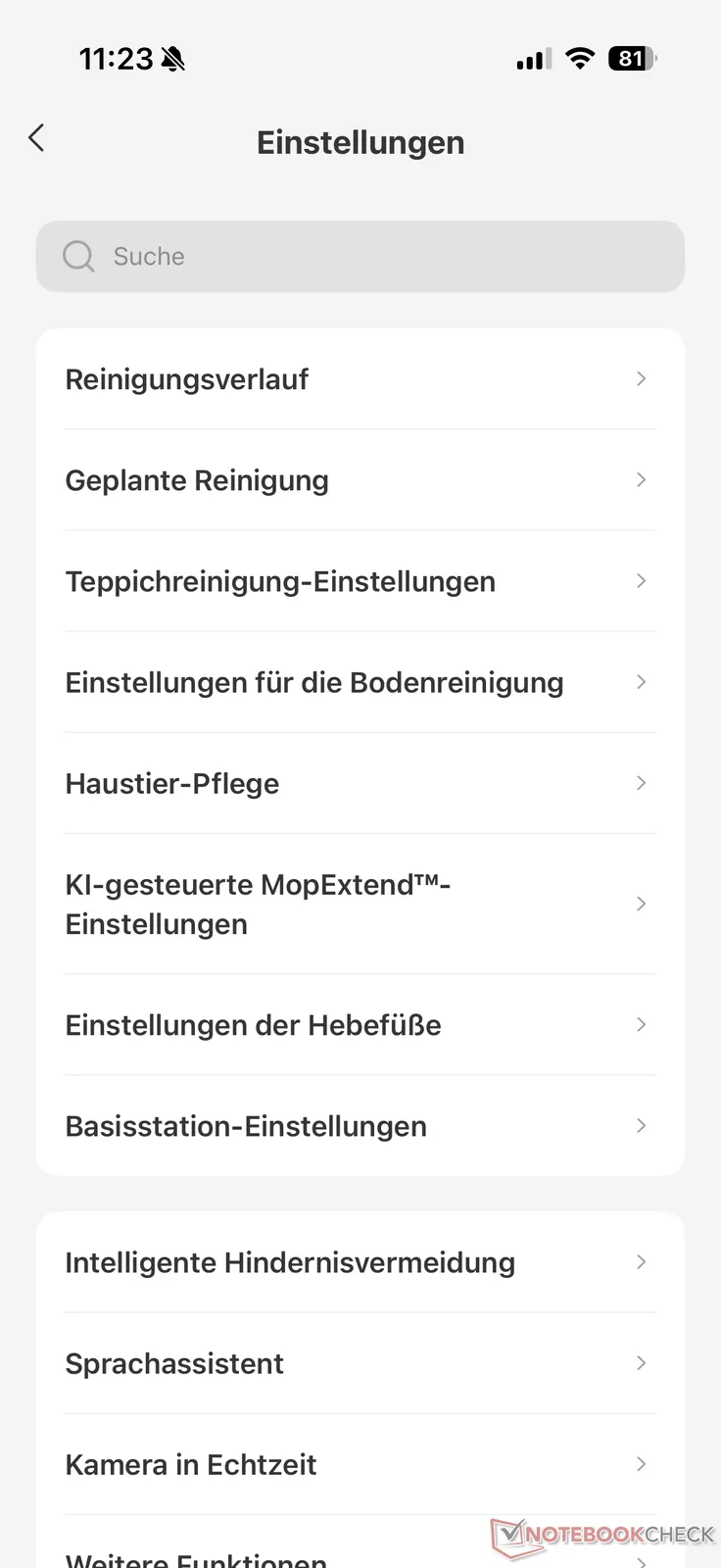 在这里,有用的不仅是拖把滚筒上的防护罩,它可以防止地毯纤维弄脏。此外,LiftPro 外壳(可通过应用程序激活)也很实用,它能让机器人自动稍稍抬起。这样,即使在长绒地毯上也不会卡住。
