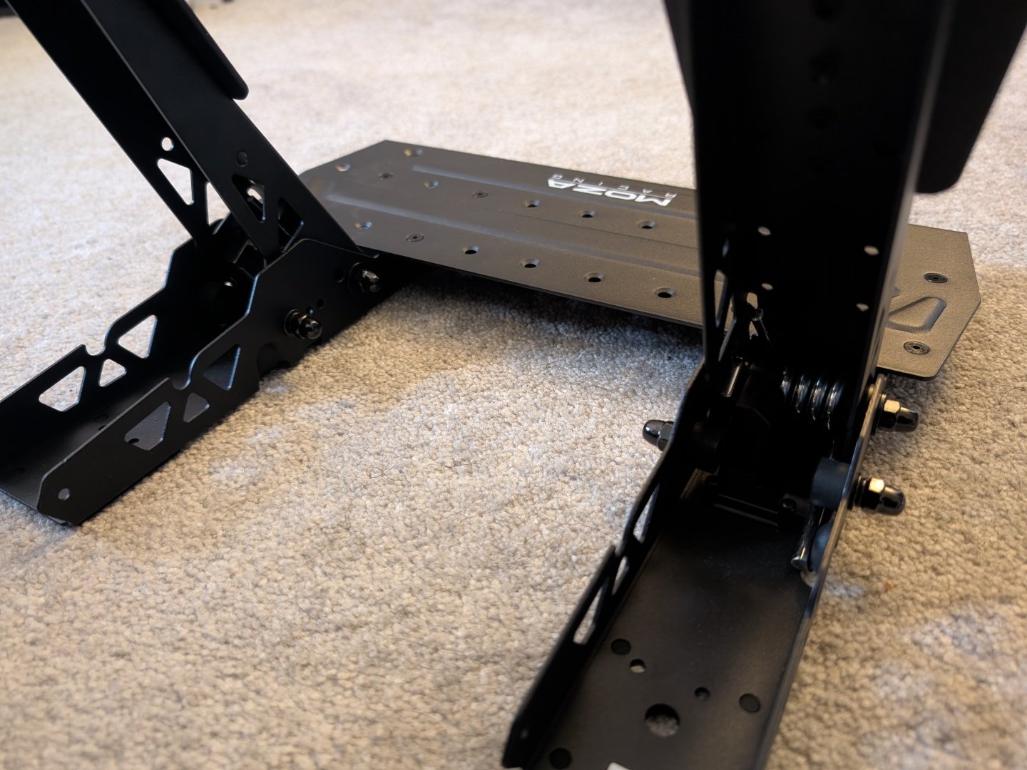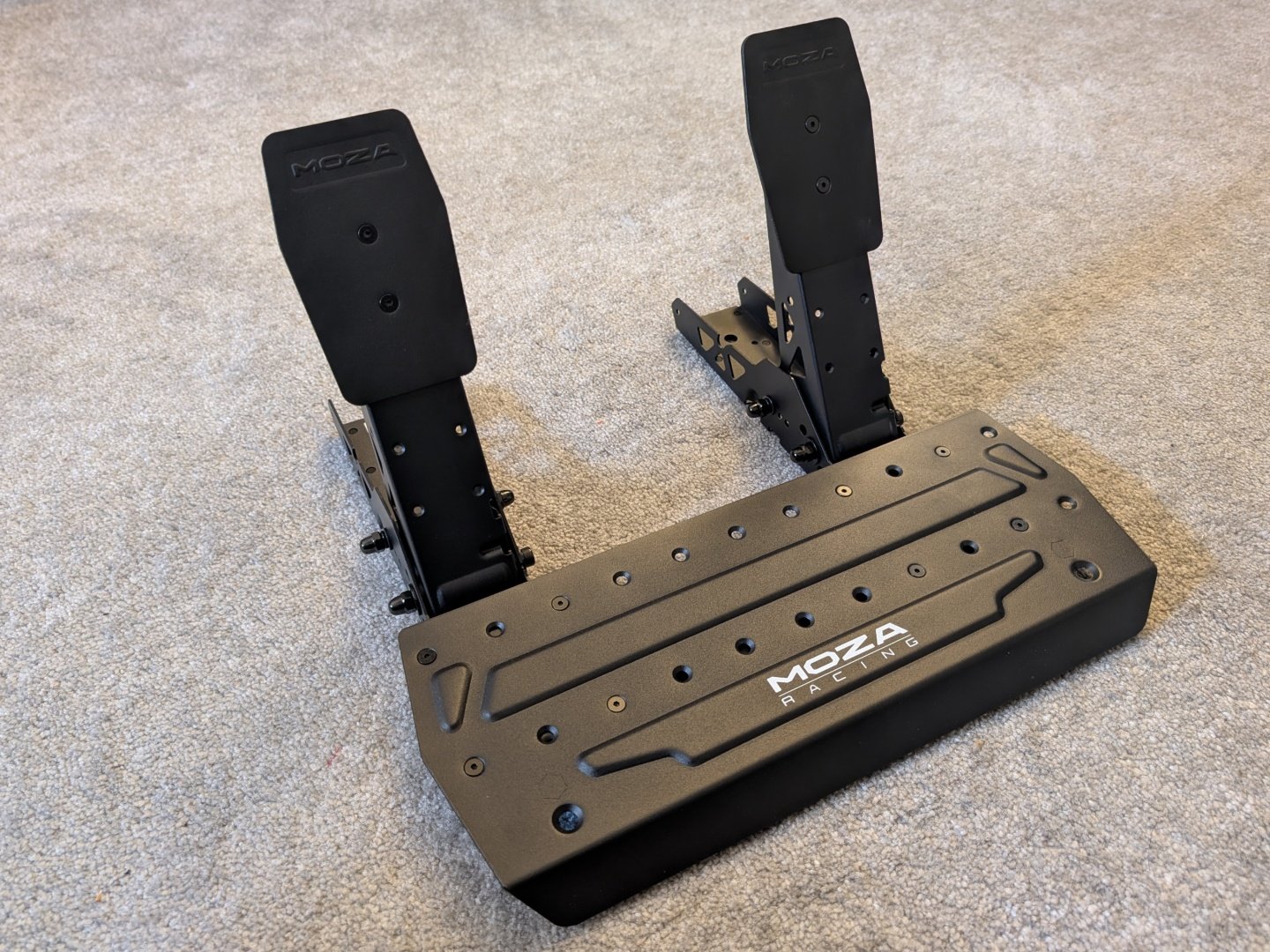 最后,踏板系统包括油门和刹车,并可安装离合器附件(需单独购买)。它们是可调的,即可以移近或移远,也可以拆卸下来单独安装在装备上,但都带有霍尔传感器弹簧。更多信息请见性能部分。底部有橡胶垫,可防止在地毯或木地板上滑动,整体制造质量非常可靠。