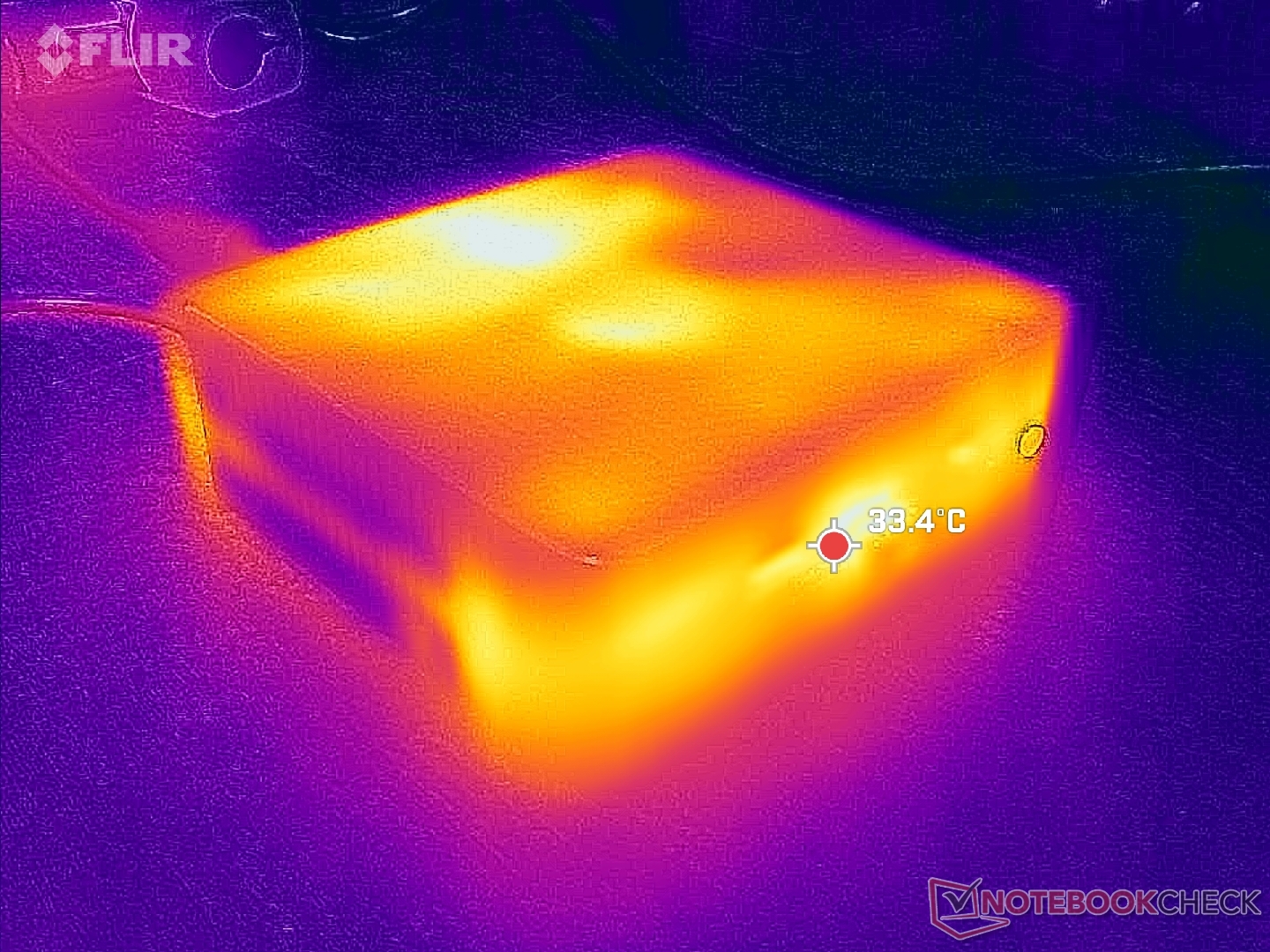最靠近后通风栅的表面温度最高。尤其是顶部表面的温度可达 43 摄氏度以上,相比之下,SEi12 仅为 37 摄氏度。 SEi12 这可能是因为 Mini S12 Pro 顶部没有通风栅。