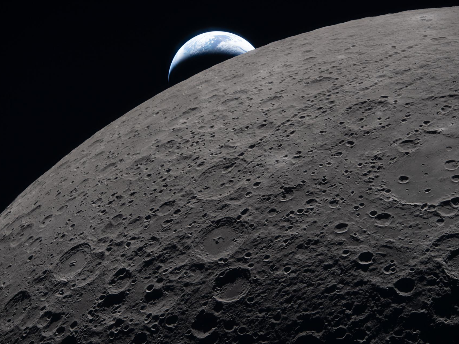 在没有氛围的情况下,阴影棱角分明,对比度高,表面纹理非常清晰--尤其是在终结者线附近。远侧图像看起来特别细致,因为它们是在太阳角度较低时拍摄的,这增加了环形山边缘和山脊的可见深度。