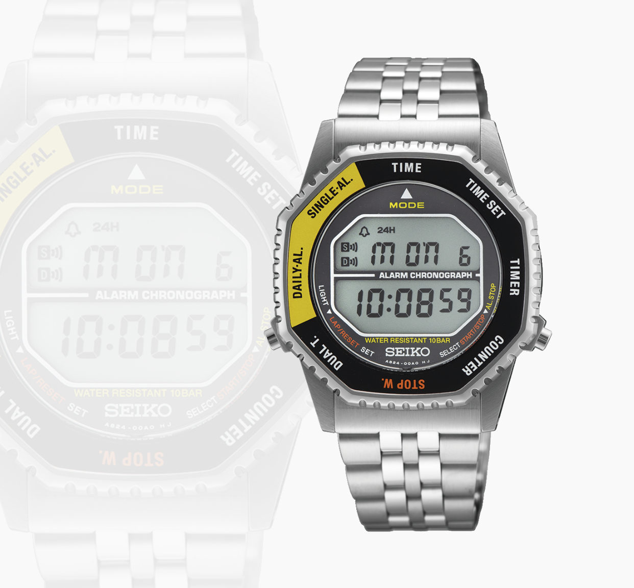 精工重新推出了 Rotocall,这是一款于 20 世纪 80 年代首次发布的数字手表,因陪伴宇航员执行美国国家航空航天局(NASA)的航天飞机任务而闻名。最初的 Rotocall 采用 37 毫米不锈钢表壳和旋转表圈,可用作秒表、计时器、双时区和多闹钟等功能的选择器。机械表圈是宇航员的一大特色,因为在太空中戴着手套更容易使用。