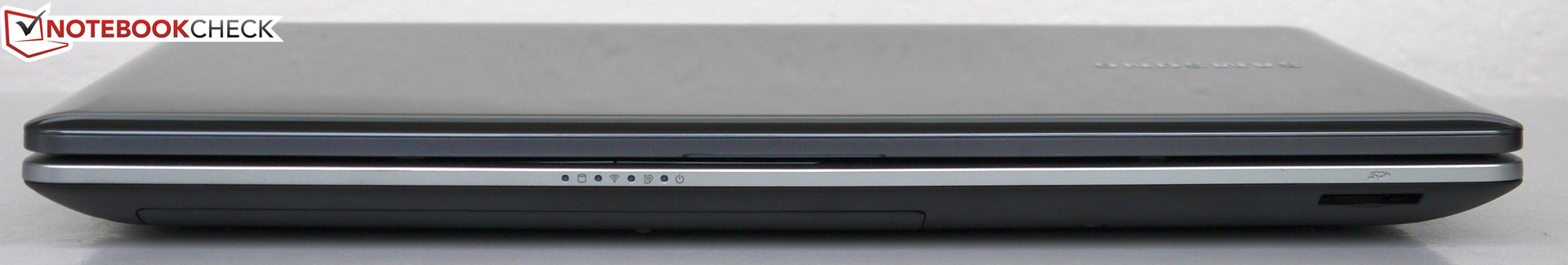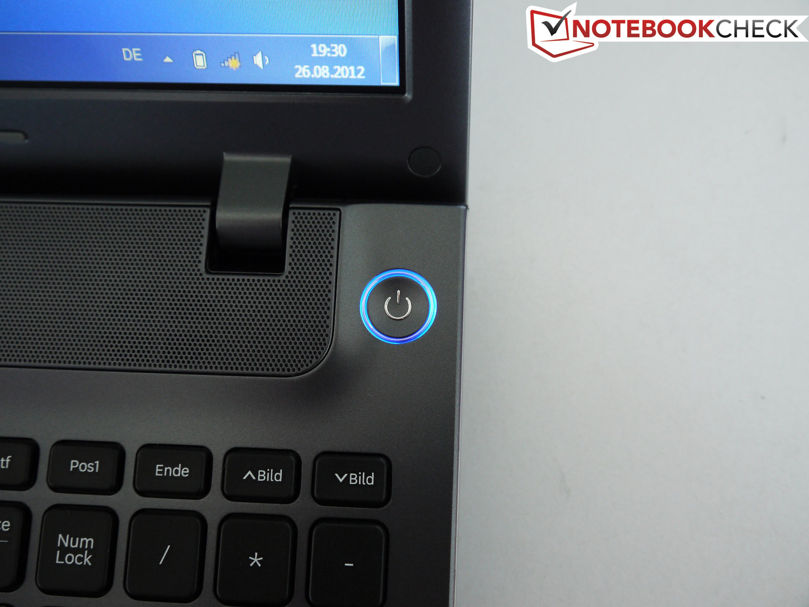 When it comes to the build, Samsung has allowed a few considerable blunders to sneak in. The sides, for example, don't have perfectly sharp edges, and the gaps between adjacent panels are not even in some places. The resistance to pressure on the other hand is reasonably good, while only the left and right sides of the keyboard can easily be dented inwards. The palm resting area on the other hand only gives way with a lot of pressure. Another positive is the optical drive, which is firm and doesn't wobble in its slot. In many cases this is an area of criticism for notebooks in this price segment.