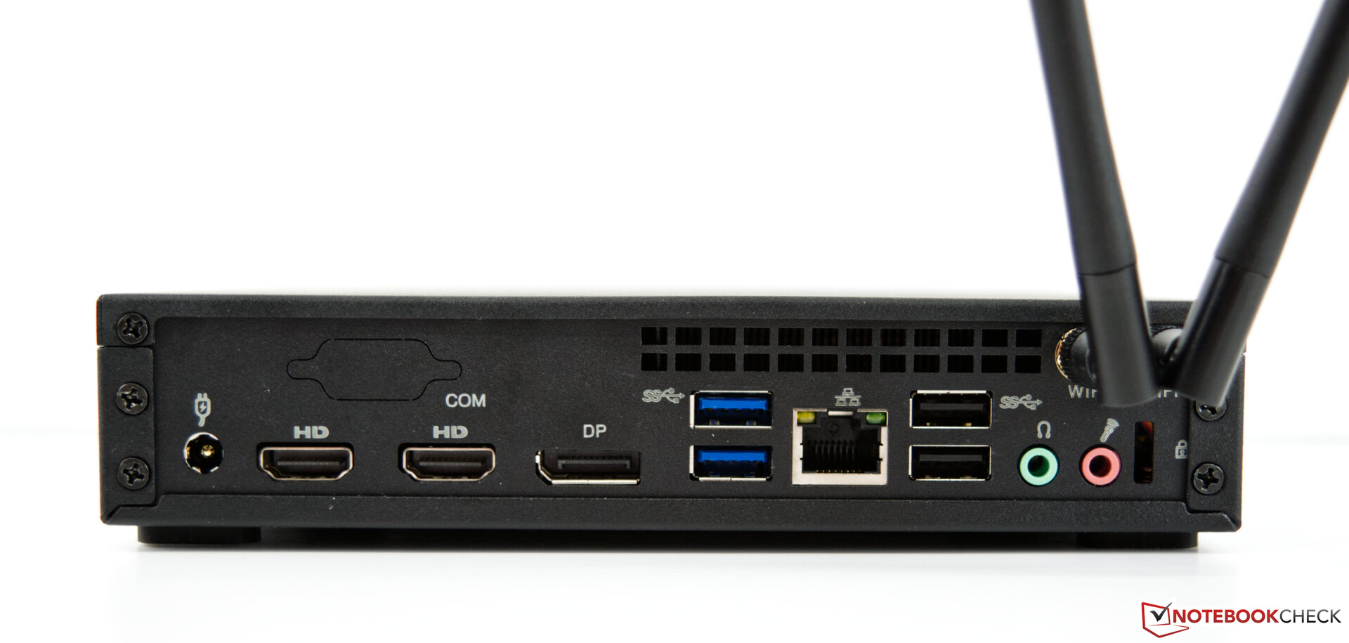 我们的评测单元配备了,英特尔酷睿i5-11400T。一条16GB的内存和一个容量为500GB的M.2驱动器。该系统的占地面积几乎为正方形,每个侧面的尺寸约为18厘米(7.1英寸),也相当紧凑,并提供你在日常使用中需要的所有外部端口。