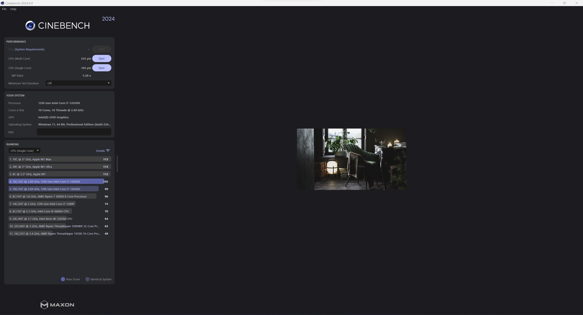 | Average Intel Core i7-12650H (45617 - 59361, n=14) | |