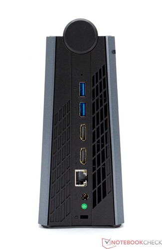 该设备的外观让人联想到塔式电脑。Nipogi AD08 的高度仅为 19 厘米,非常小巧,可以轻松放在桌面上。虽然其材料仅限于塑料,但它的制造质量还是不错的,这意味着我们并不像其他一些设备那样喜欢它的手感。为了存取内存或固态硬盘,机箱右侧(从正面看)可以轻松拆卸。遗憾的是,制造商并没有在另一侧提供如此简便的解决方案,而这将使清洁风扇的工作变得简单得多。