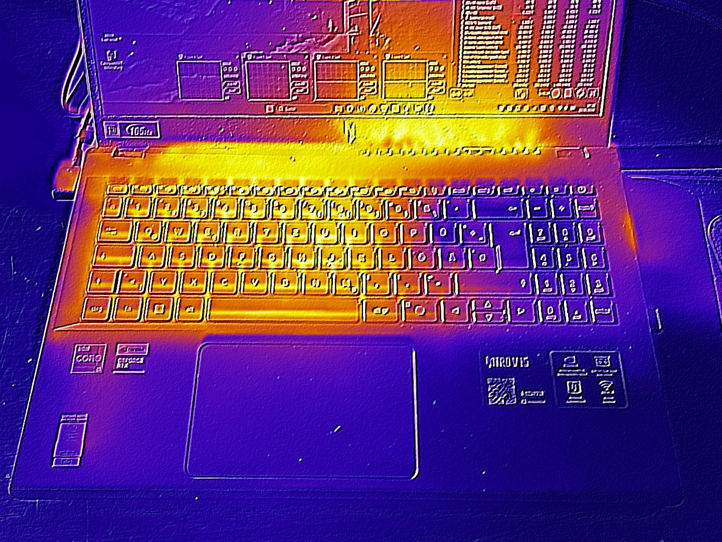 (±) 3: The average temperature for the upper side is 37.8 °C / 100 F, compared to the average of 33.9 °C / 93 F for the class Gaming.